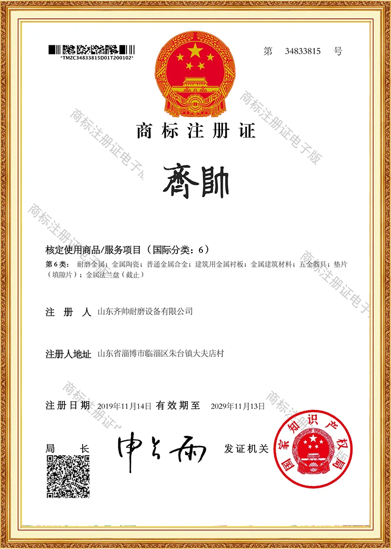 कम्पनी ISO9001 प्रमाणित छ र यसको प्राविधिक शक्ति को लागी मान्यता कमाई, धेरै उपयोगिता मोडेल पेटेन्ट सम्मानित गरिएको छ। हामी हाम्रो आफ्नै कारखानाको स्वामित्वमा छौं र एक दशक भन्दा बढीको लागि पहिरन-प्रतिरोधी उत्पादन उद्योगमा गहिरो संलग्न छौं।